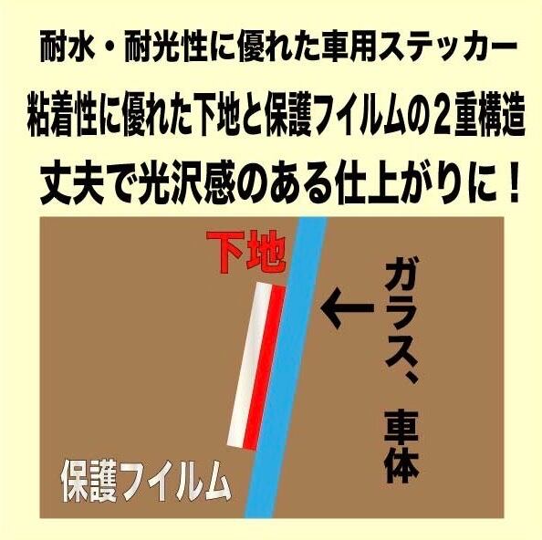 ステッカーは下地と保護シールの2段階構造で、防水性に優れた素材を使用。